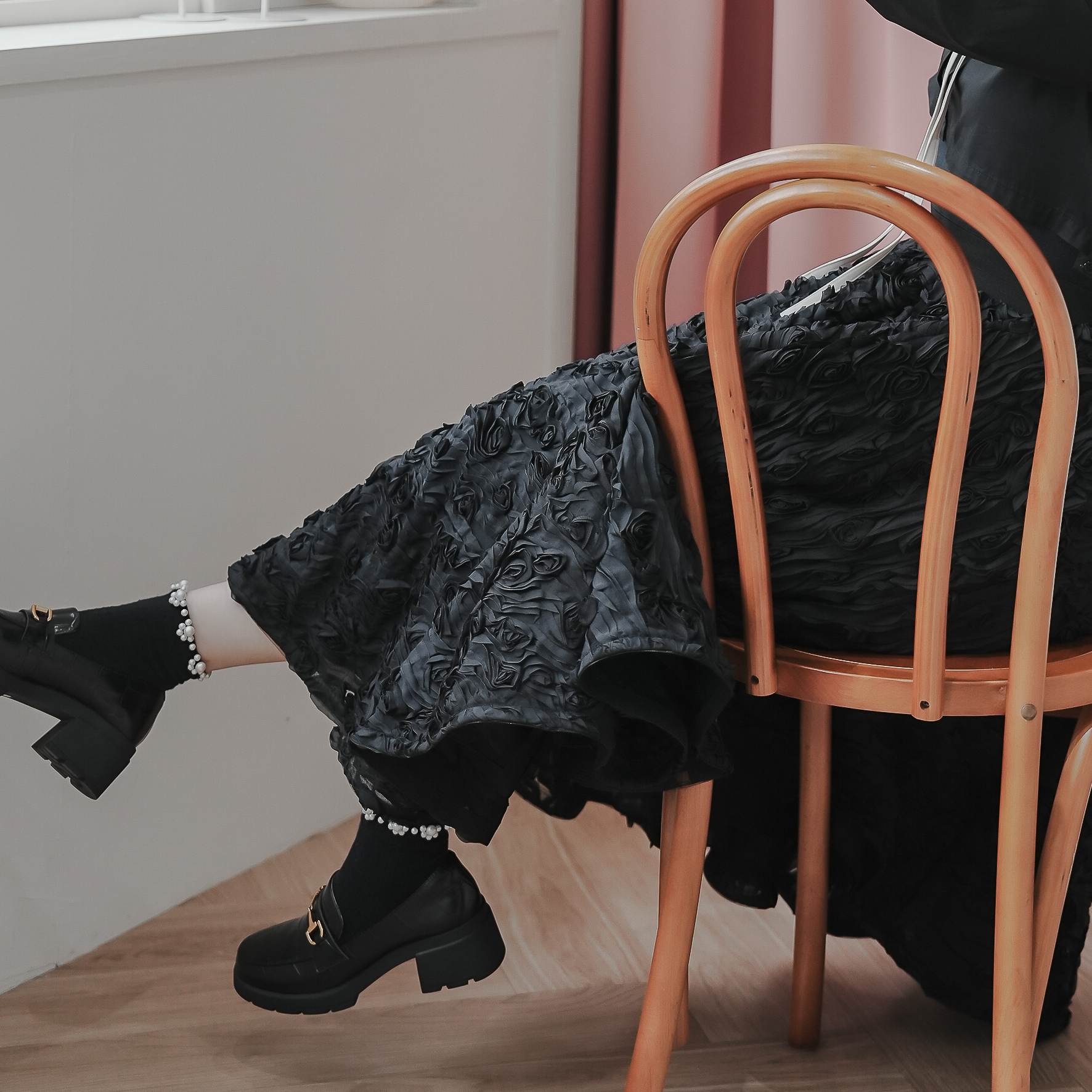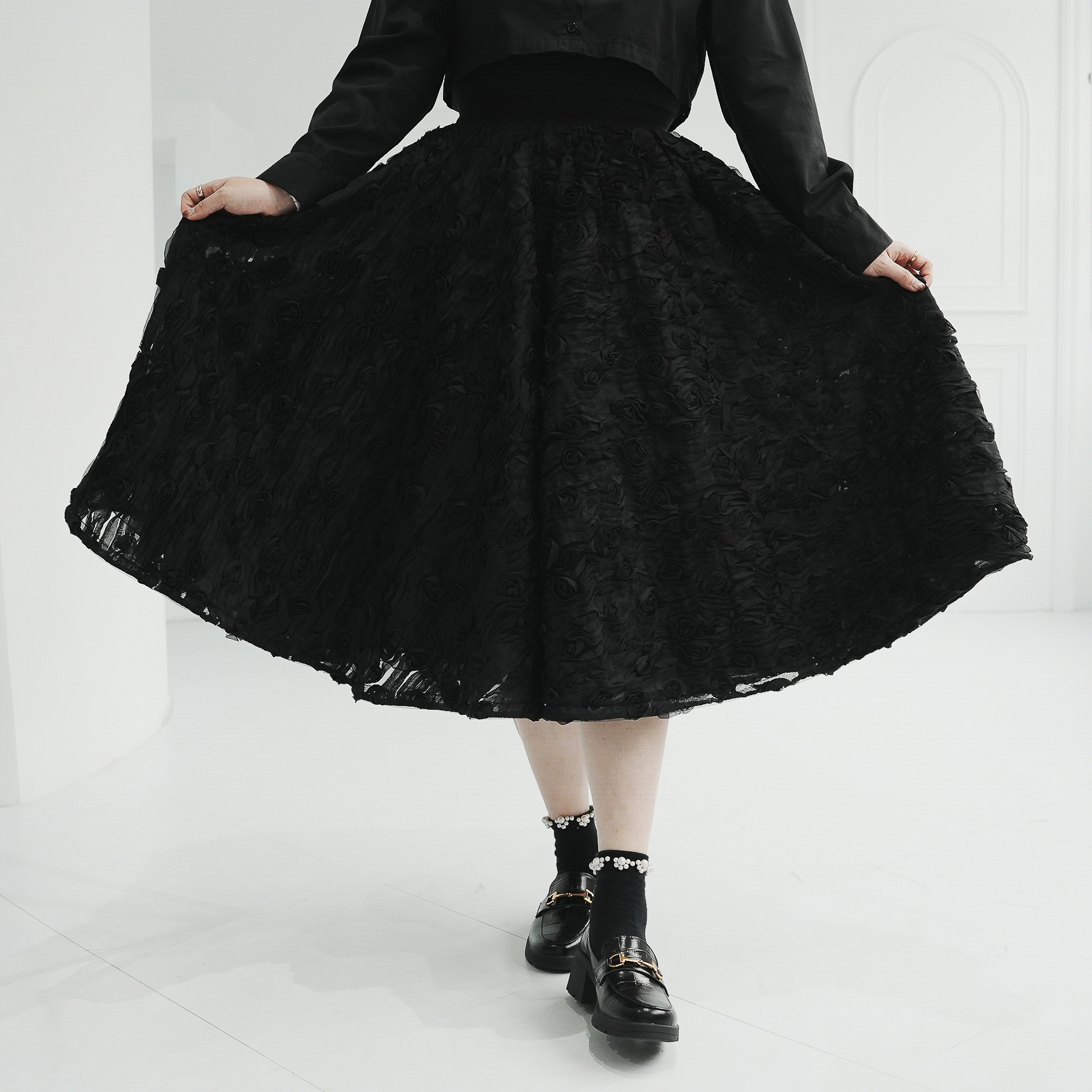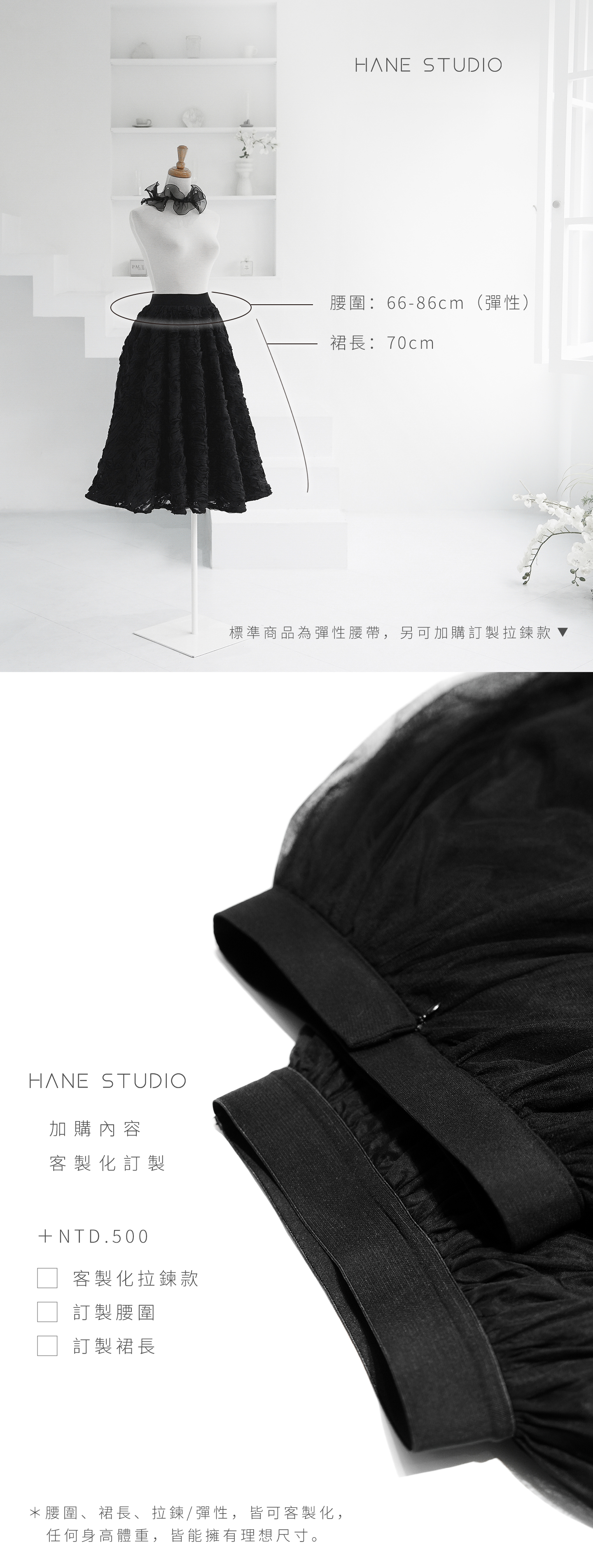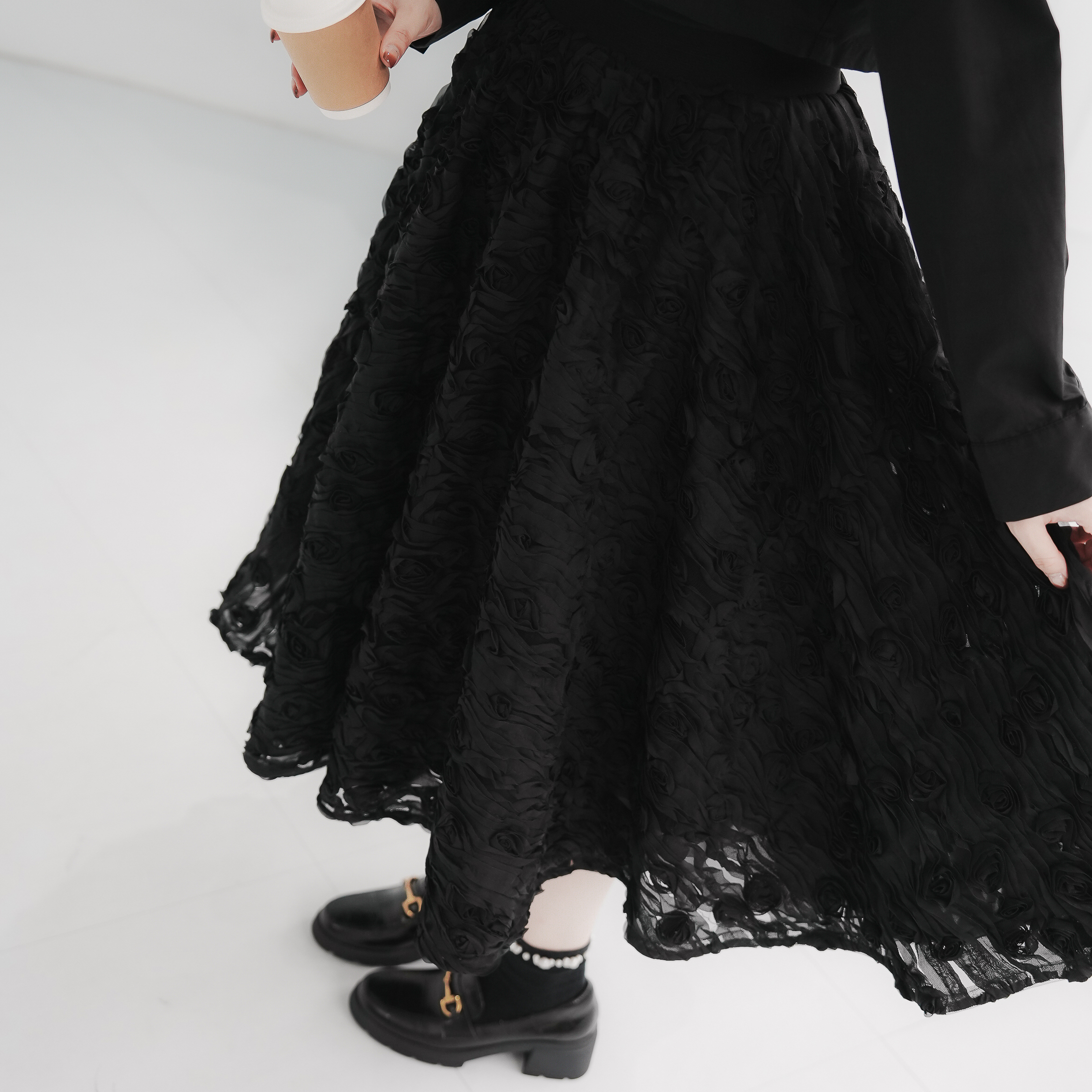 黑玫瑰3D布料、搭配A字立體剪裁,