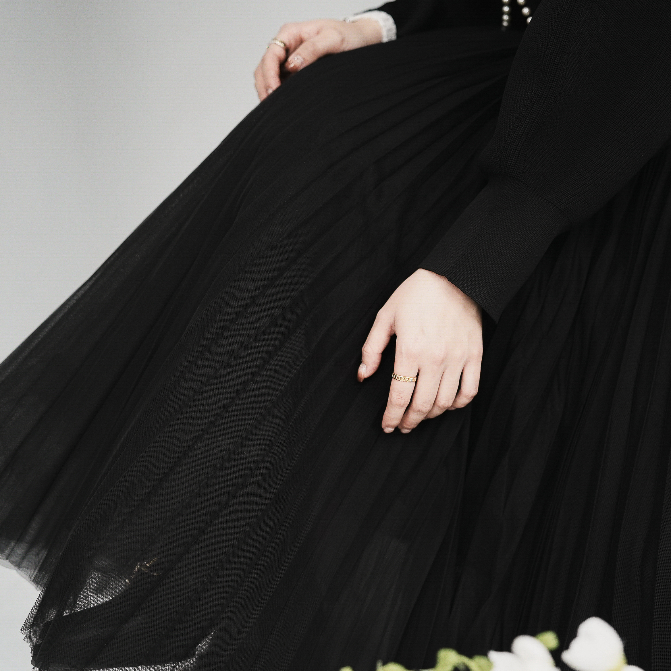 優雅精緻百摺,七層紗層層堆疊、蓬鬆不透光。